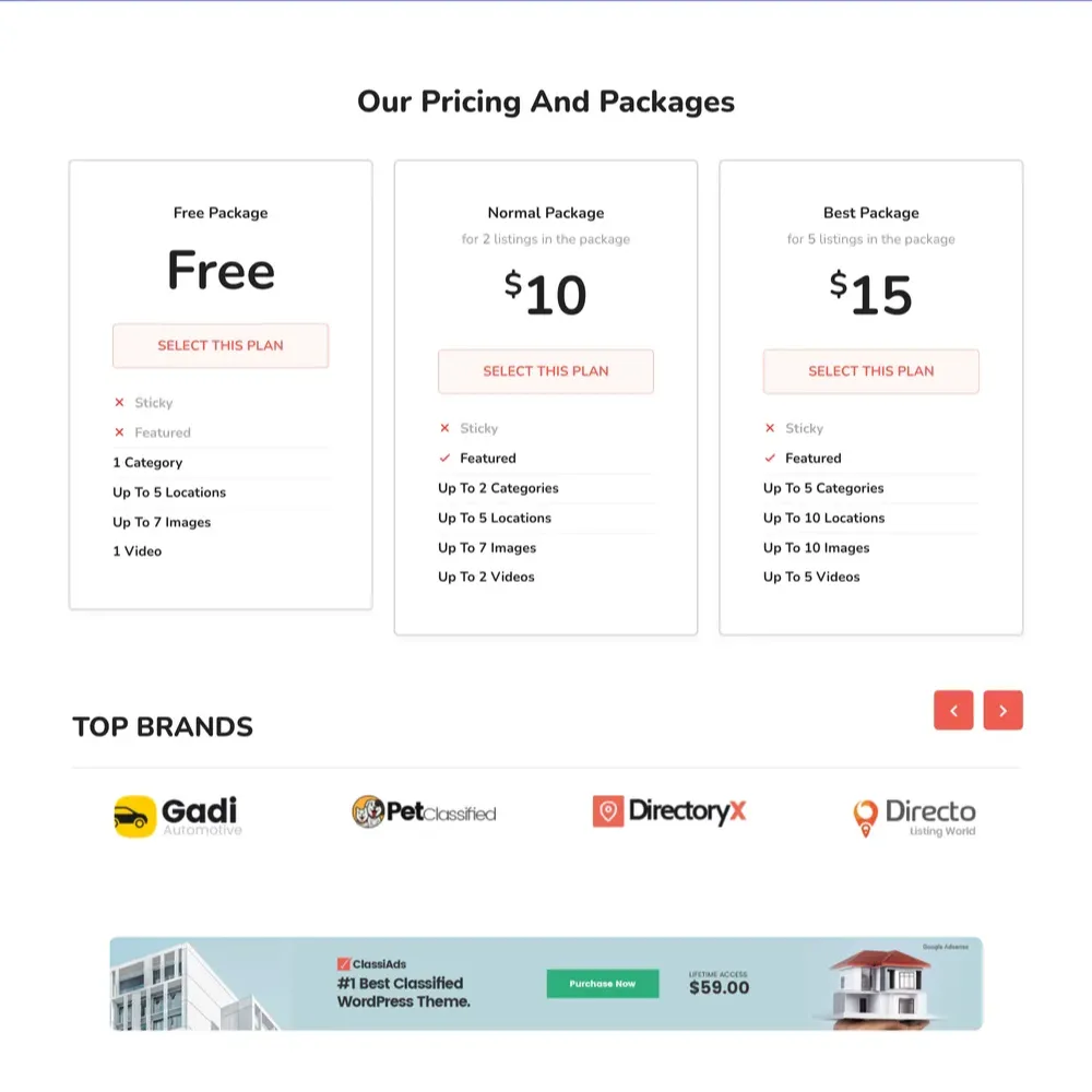 Classified Listing Website Design with Free VPS Web Hosting