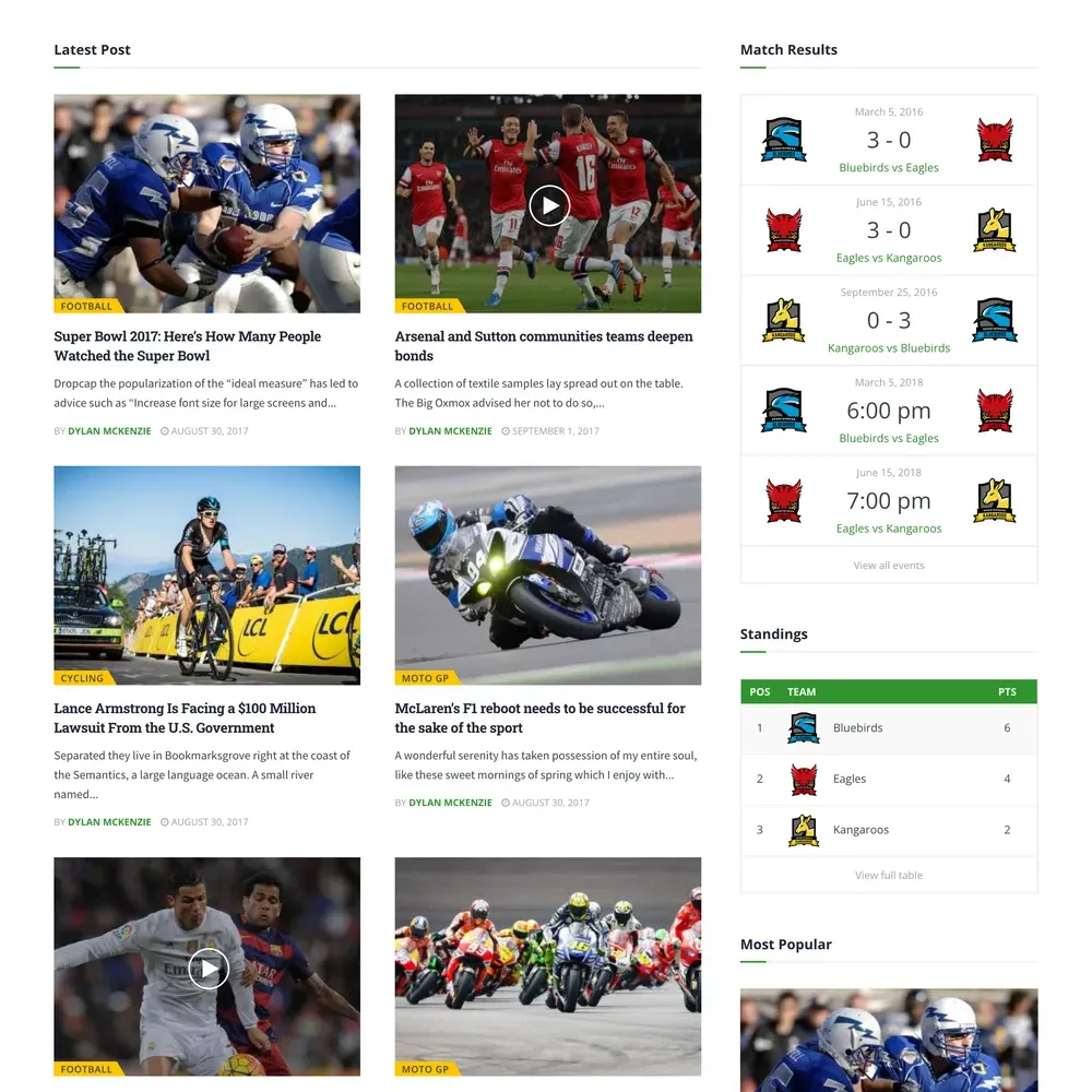 Sports News Website Design with Free VPS Web Hosting